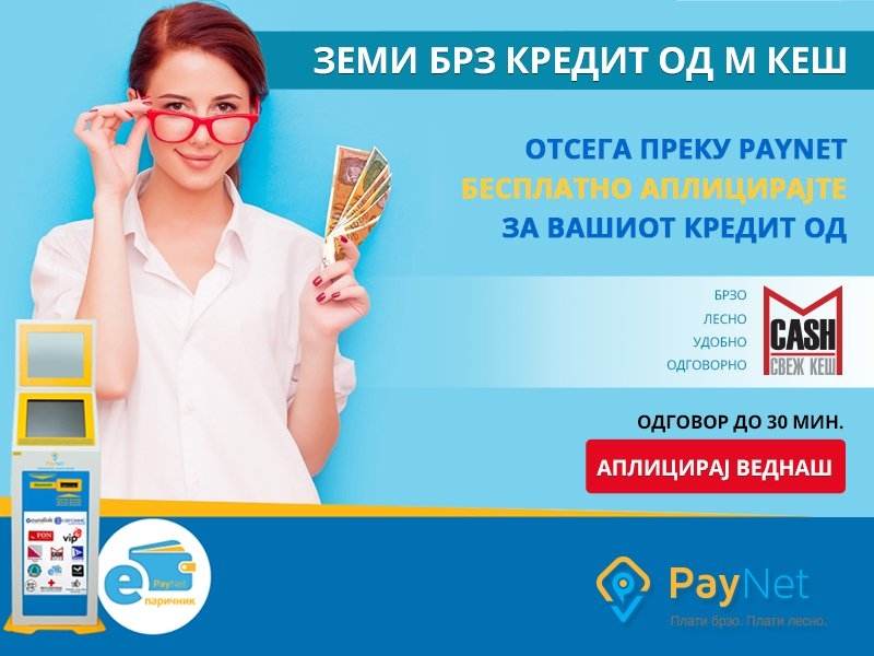 Земајќи го во предвид Вашето време, сега можете подеднакво брзо и едноставно да аплицирате за М Кеш брз кредит и преку терминалите на PayNet низ цел...